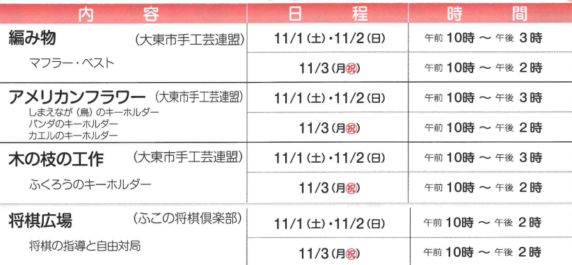11/2(日)10:00~15:00・11/3(祝)10:00~14:00