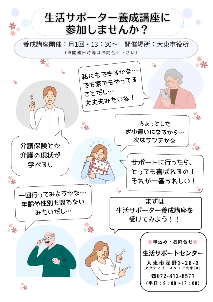 【申込・問い合せ先】生活サポートセンター ☎072-812-6571 FAX 072-812-6572