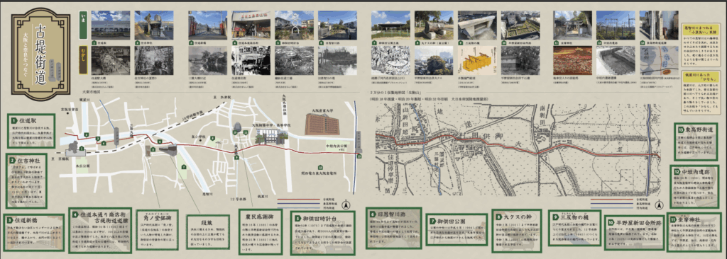 古堤街道周辺の歴史遺産のみどころやエピソードが紹介されています。