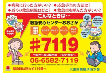 など判断に迷いませんか?そんな時は救急安心センターによる相談が利用できます。