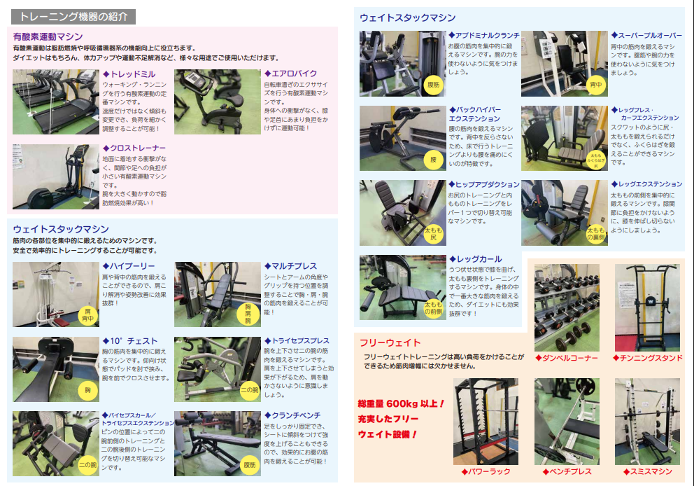詳しくはこちらをご覧ください↓(トレーニング機器の説明はURLより引用)